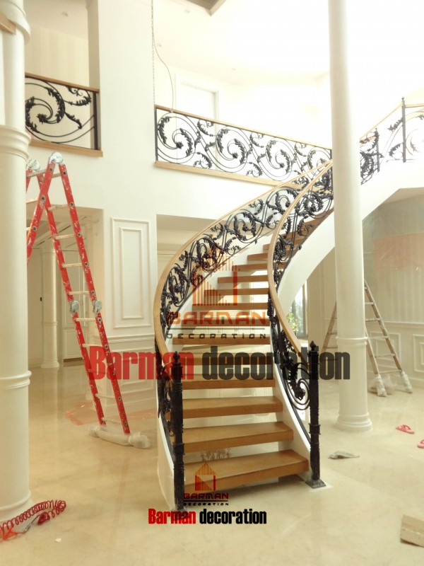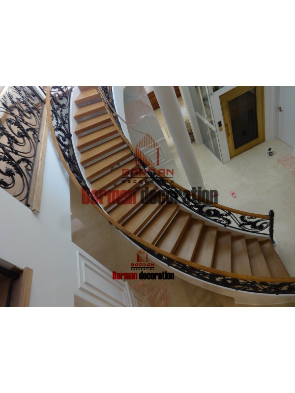 پله چوبی - نرده روسی- پله گرد - پله گرد فلزی - کف پله چوب - نرده چوبی- پله پیج - روکش بلوط - رنگ پلی اورتان - نرده فرفورژه- نرده شیشه - نرده استیل - نرده فلزی - شاسی فلزی پله گرد