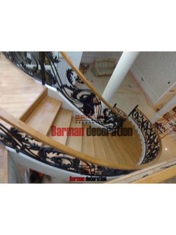 نرده شیشه- پله گرد - پله گرد فلزی - کف پله چوب - نرده فرفورژه - پله پیج  - روکش راش- رنگ پلی اورتان پله گرد - پله پیچ دو محورباکس با کف پله چوب و نرده فلزی و شاسی چوبی هندریل چوبی پله دکوراتیو پله دوبلکس