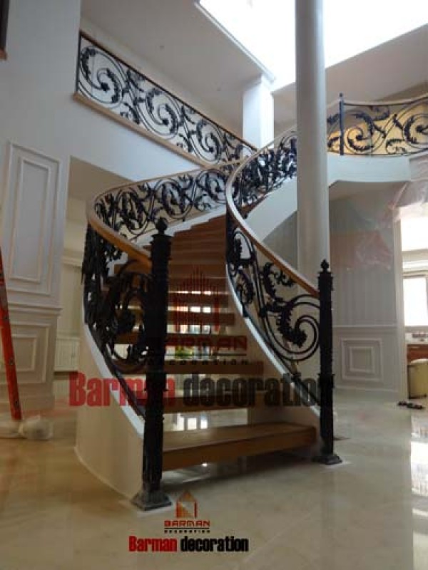 پروژه اجرا شده با نرده فرفورژه و کف پله چوب بلوط امریکایی میباشد چوب بلوط یکی از خوش موجترین چوبهای موجود در بازار میاشد .